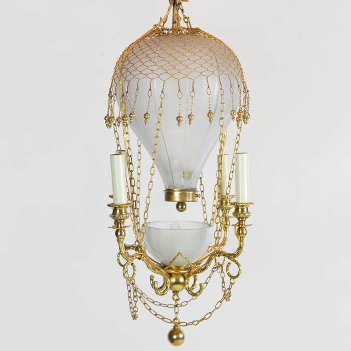 20th C. Gilt Five-Light Ormolu and Glass Montgolfier Hot Air Balloon Chandelier