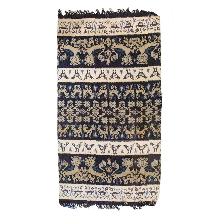 Bhutanese Silk Woven Kira Textile, Purple, Orange and White on Blue