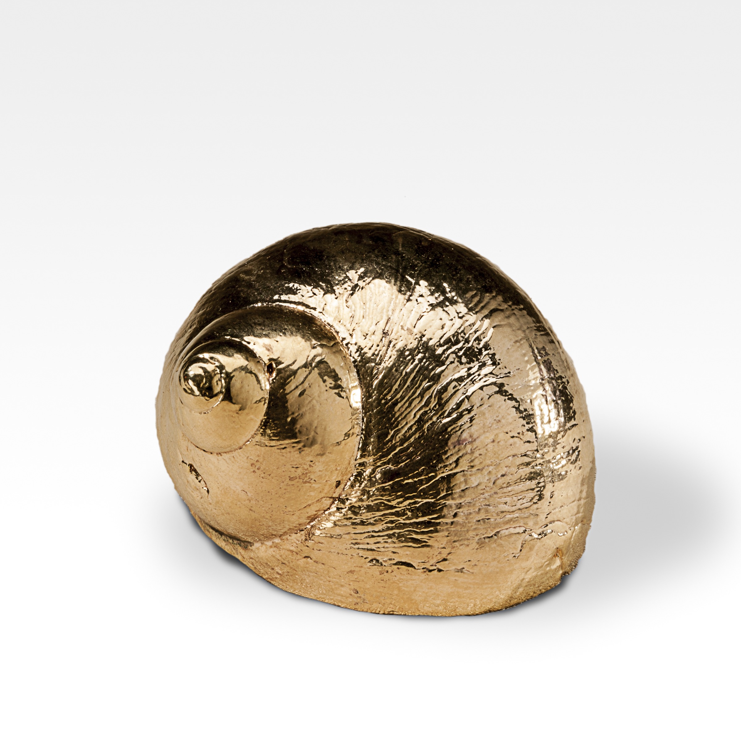 Gilded Burgus Lineate Shell. 2". Creel and Gow has been working with the same atelier in Rome, Italy for over 20 years to make our signature silvered shells. Our workshop has been operated by the same family for generations. For decades, this family has also done restoration work on silver pieces for the Vatican.