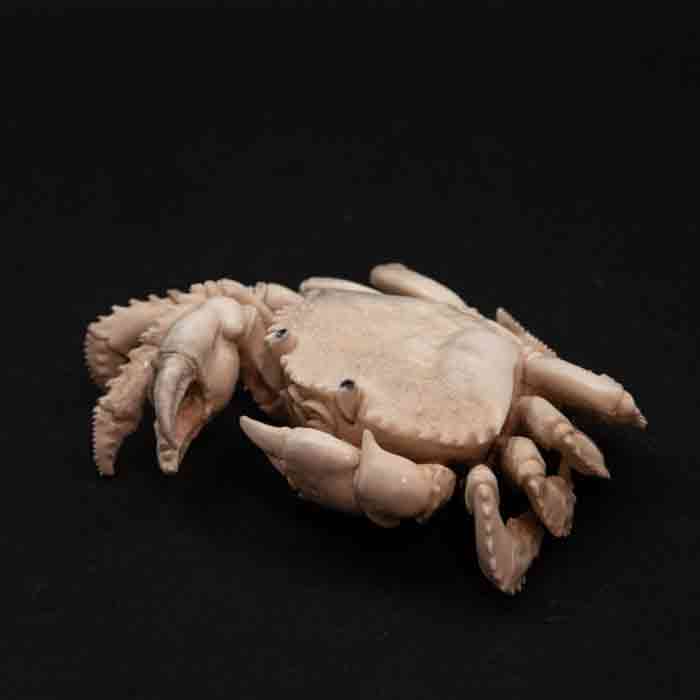 Detailed moose antler carving of a crab, from Indonesia. This is a one of a kind object. The moose antler was sourced in North America and then sent to Asia for carving. Quality of ivory, but with sustainability, as the moose naturally shed their antlers.