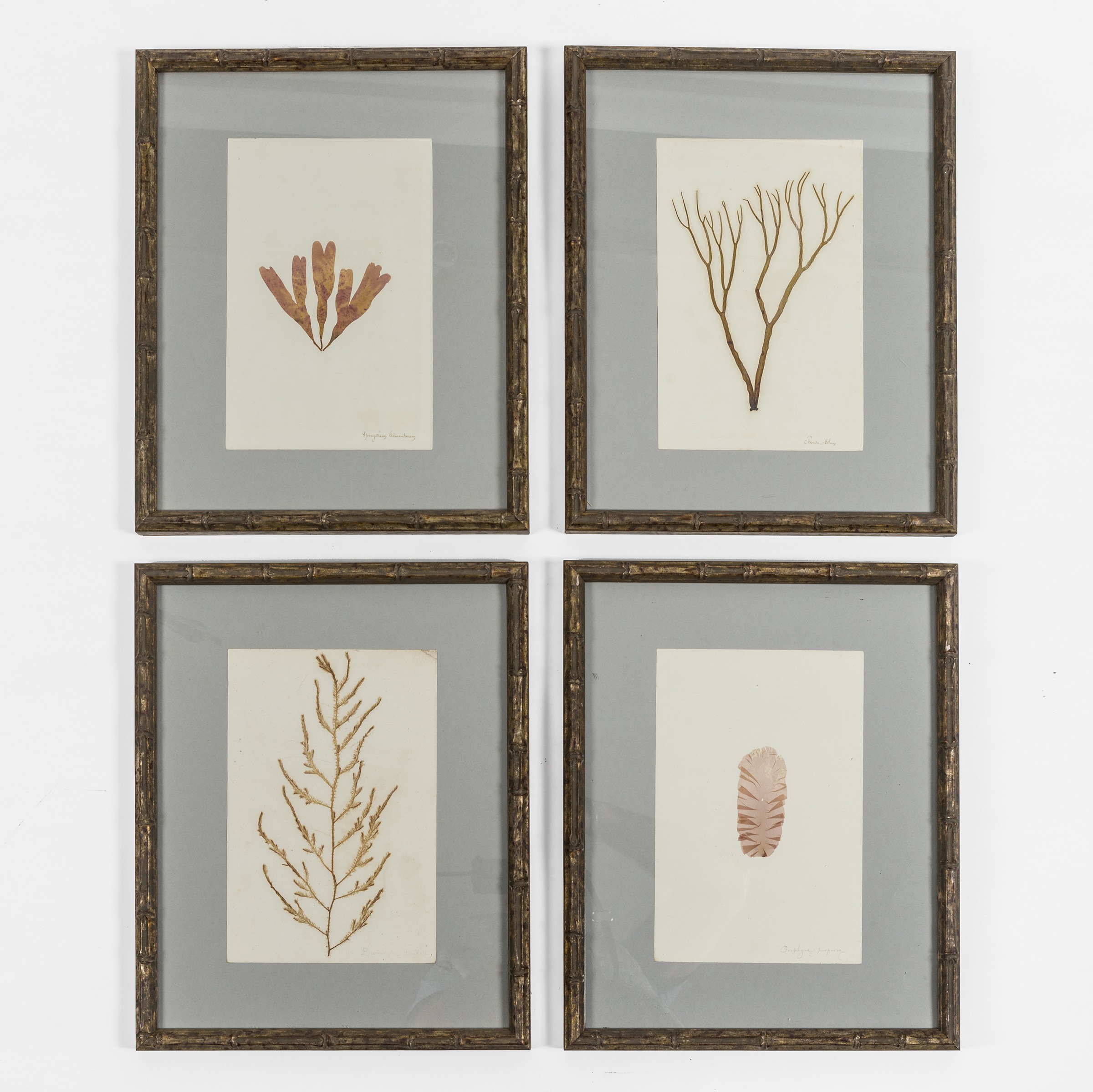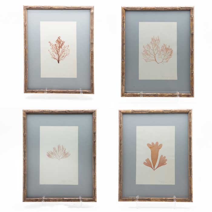 Pressed seaweed specimens from a two volume collection "Marine Plante". Purchased in France. Much like the herbier (a collection of plant specimens), the alguier are collections of seaweeds from oceans and seas around the world. In the late 19th century collecting seaweed samples (Algiers) was the rage for affluent Europeans, these collectors spent hours drying, pressing and mounting these samples they found on their travels.