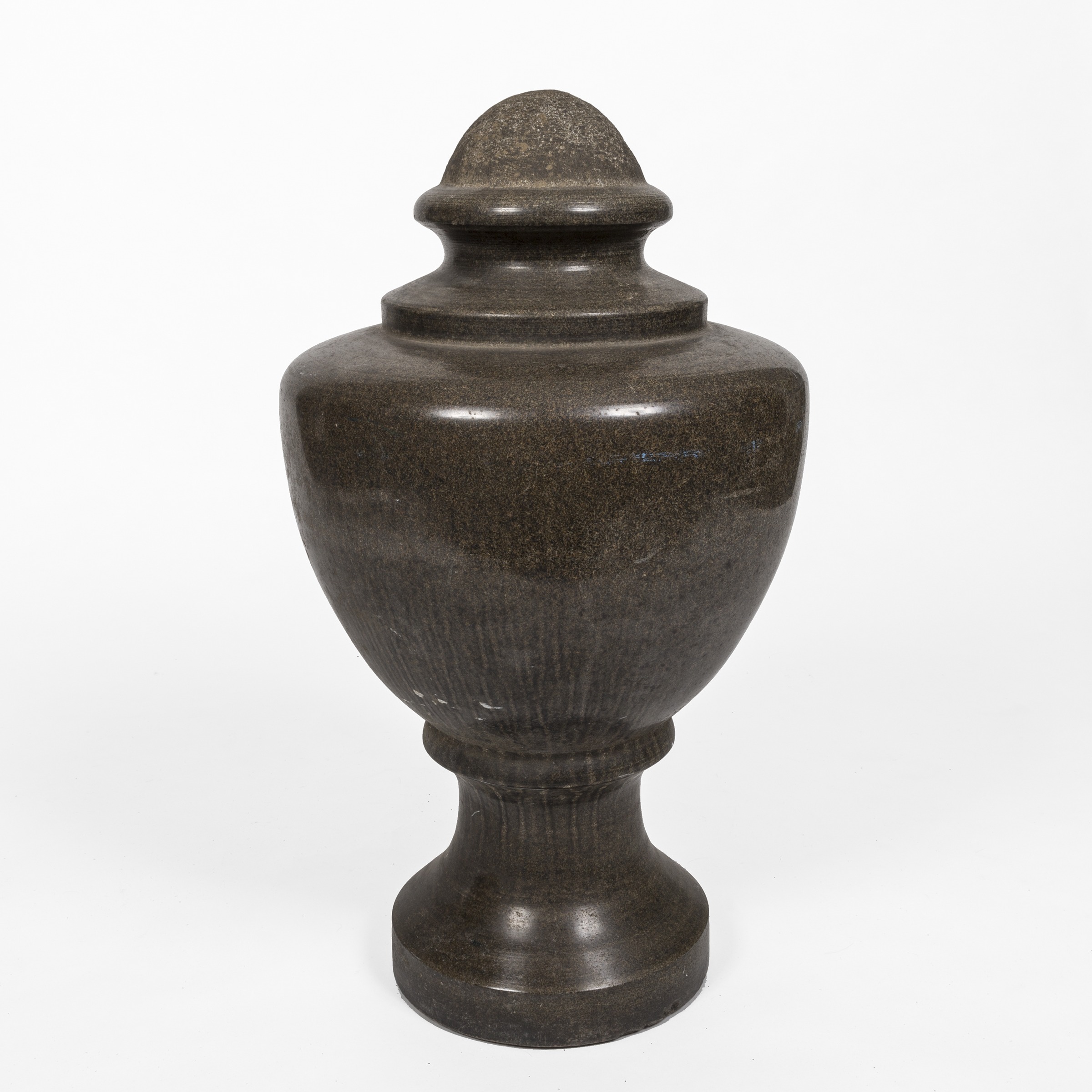 19th century solid granite stone Grand Tour style decorative vase. Granite is a very hard igneous rock that has a very pleasing granular decoration. These two qualities are responsible for its use in architectural and decorative elements from as far back the Egyptian pyramids and obelisks. 13" x 13" x 24" H