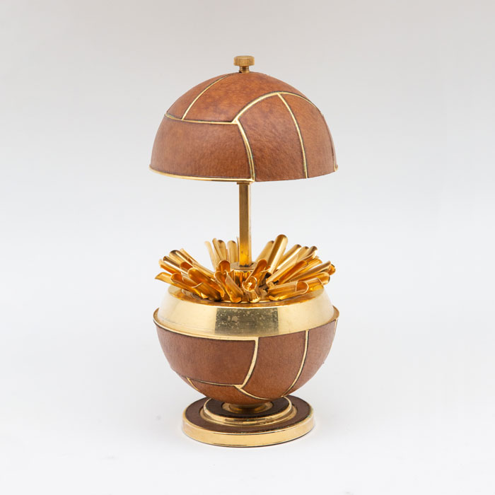 Leather and Brass Sports Ball Expandable Mid-Century Cigarette Holder