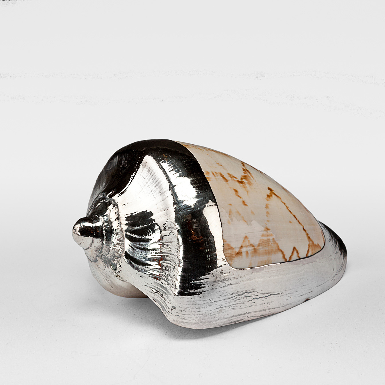 Partially Silvered Nobilis Shell. Available in 4" and 5". Made from natural shells. Creel and Gow has been working with the same atelier in Rome, Italy for over 20 years to make our signature silvered shells. Our workshop has been operated by the same family for generations. For decades, this family has also done restoration work on silver pieces for the Vatican.