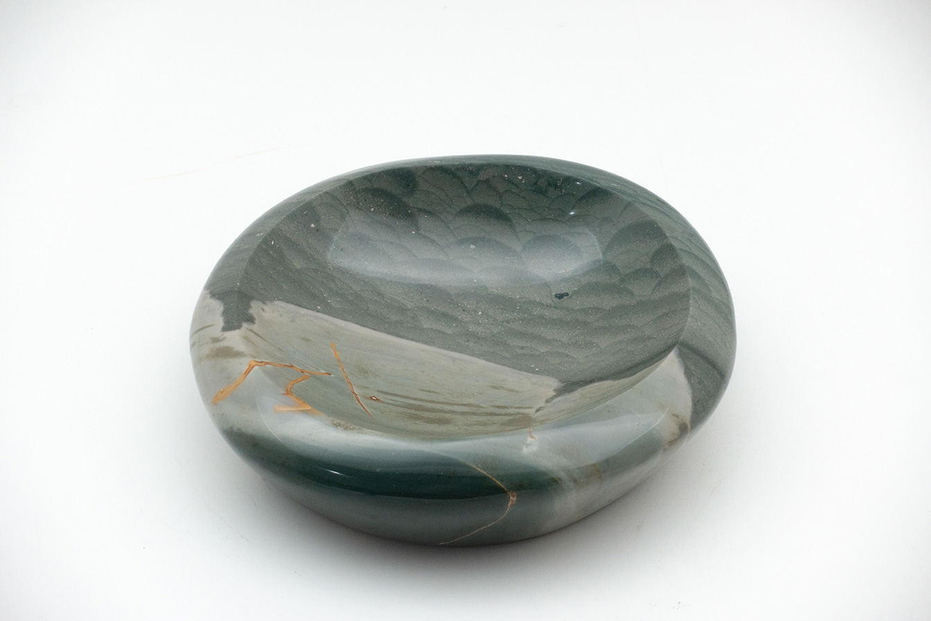 Ocean Jasper Vide Poche. Coin tray. From Madagascar. Ocean jasper is also called snakeskin jasper. It is a combination of chalcedony, microcrystalline quartz and other minerals that result in colorful bands and patterns. The vide-poche is a small bowl or container. It is to be kept in a convenient location to empty your pockets into when you walk in through the door.