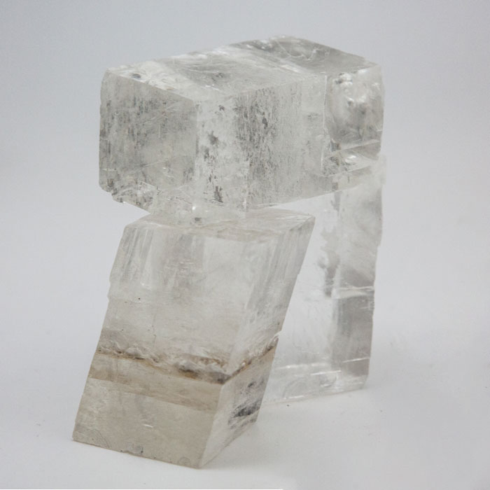 Single Piece of optic crystal. (Three pieces pictured.) Pieces of optical calcite are naturally formed, and each piece is unique. Also known as Iceland Spar. ~2"
