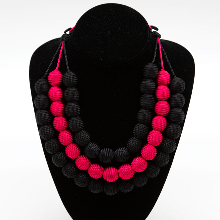 Green/Black Three Strand Necklace with Frog Closure