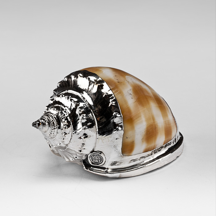 Partially Silvered Scotch Bonnet. 4". Creel and Gow has been working with the same atelier in Rome, Italy for over 20 years to make our signature silvered shells. Our workshop has been operated by the same family for generations. For decades, this family has also done restoration work on silver pieces for the Vatican.