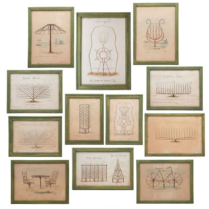 Set of 12 Rare French Watercolor Studies of Espaliers