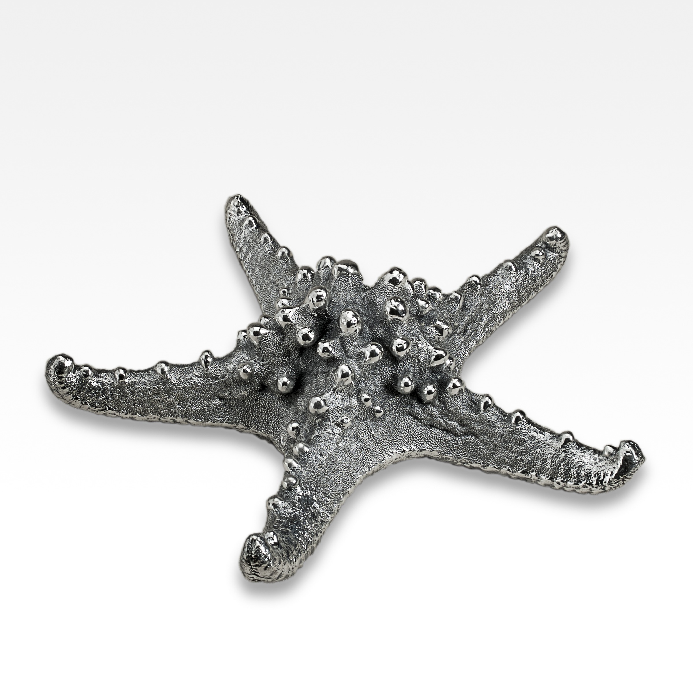 Starfish Galeazzo silvered starfish. Available in 2", 3", 8" and 11". Creel and Gow has been working with the same atelier in Rome, Italy for over 20 years to make our signature silvered shells. Our workshop has been operated by the same family for generations. For decades, this family has also done restoration work on silver pieces for the Vatican.
